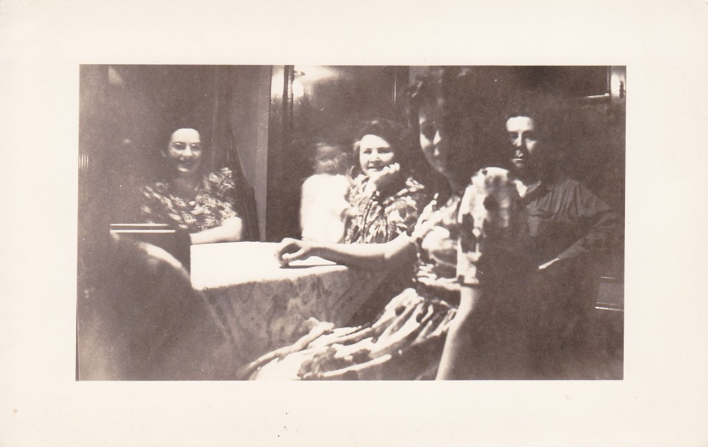 From left: Fran Fuchs Lainsbury, Dody Fuchs Abbott, and their mother, Mary McMahon Fuchs at the table in the Foley house in Benson. That’s my Aunt Mary (actually a great aunt, but always just Aunt Mary to us). I think Aunt Mary looks so cute here. I only remember her when she was twenty years older.