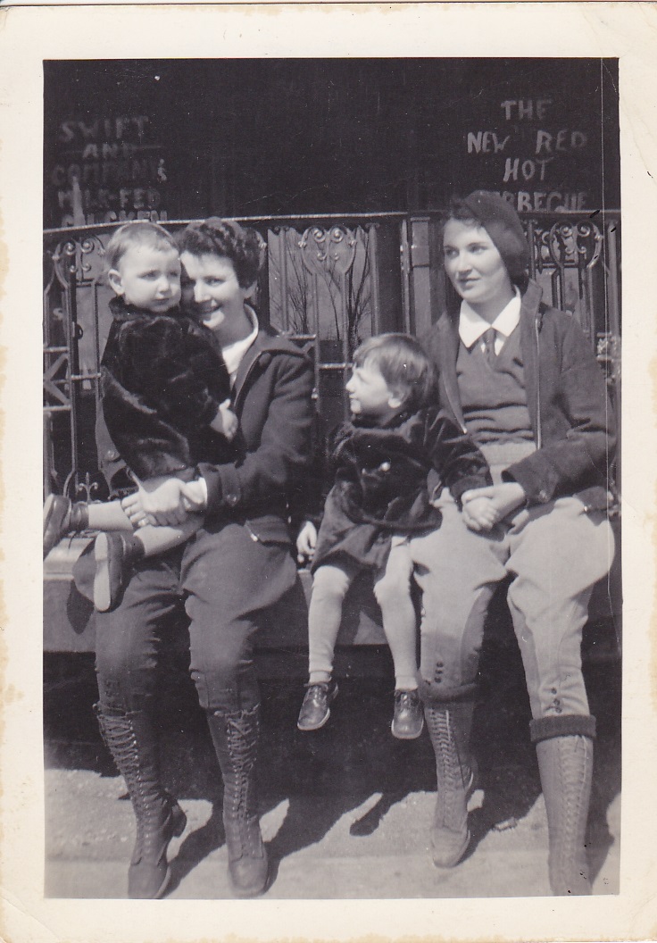 In the 1930s, Agnes regularly visited Mary and her growing family. Often she and a friend would don traveling clothes (jodhpurs, jackets, and tall boots) and hitch a ride from the city, making their way 140 miles west on Highway 12 to Benson. Although eight years separated the sisters, Agnes always said that she and Mary were best pals, and these visits were happy times (look – even Aunt Maggie is smiling in the pic below).