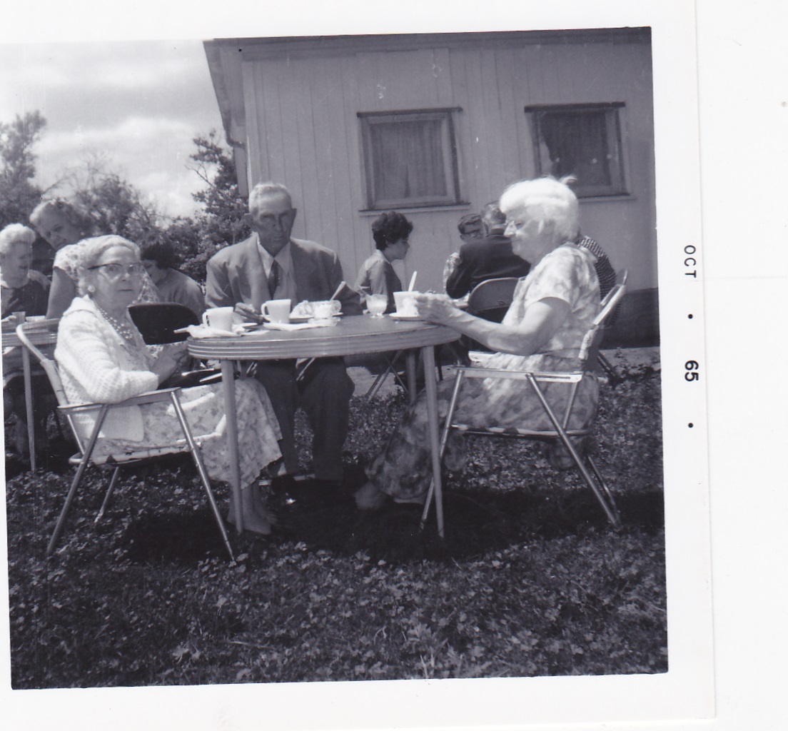 Note: Mom told me that the guy at the left behind the table is her cousin Jim Nelson. So, if this was a modern photo, he would have squeezed himself in somewhere to be part of the shot! Also, mom thinks this may have been Dodo and Bernie’s wedding (that would explain Bernie’s natty ensemble.