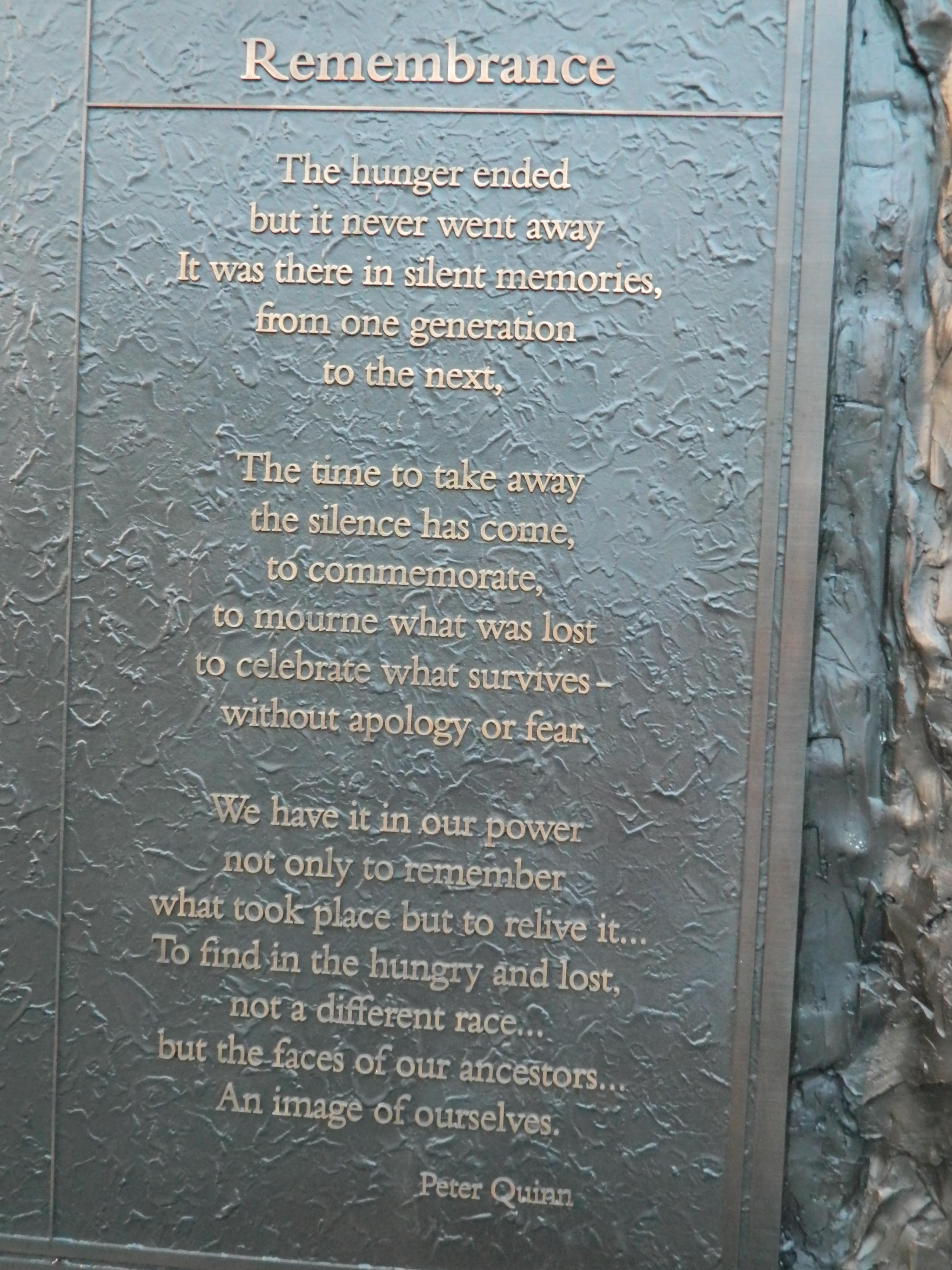The Irish Memorial is a beautiful tribute to our Irish ancestors and a poignant reminder of their struggles, tragedies, and triumphs.