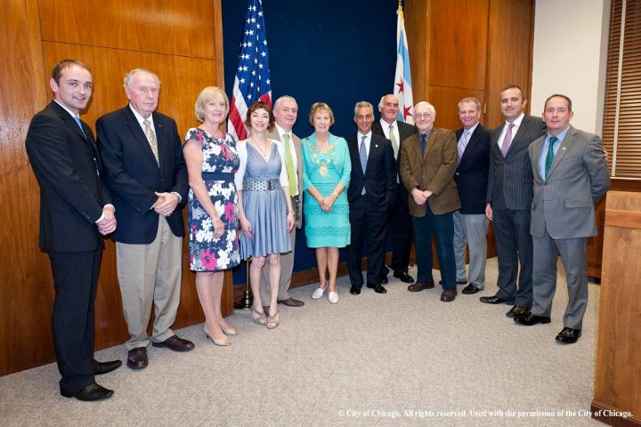 Galway City delegation, members of the Chicago Sister Cities Committee, Ireland XO and Consul General Aidan Cronin with Mayor Rahm Emanuel