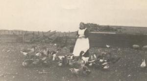 Annie and her chickens on her farm in Tara Township, near Clontarf, Minnesota