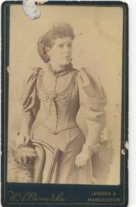 All of that was well and good, but I couldn’t find anything in the biographical information on Father Molloy that could point to a connection to my great-grandmother. That was until I read in his obituary that he was survived by one sister named Delia in Manchester, England. Immediately I thought of the dozen or so photographs taken in the studios of Manchester, England that Annie had saved. Of course, none of the photographs were identified, but I assumed they were of family members. Annie had one sister who moved to Manchester and raised a family (Bridget) and another sister who lived there for a few years before returning home to Kildare (Catherine, who I have mentioned before.) Manchester could be the connection, but it made my head hurt and I told myself I would tackle this another day.